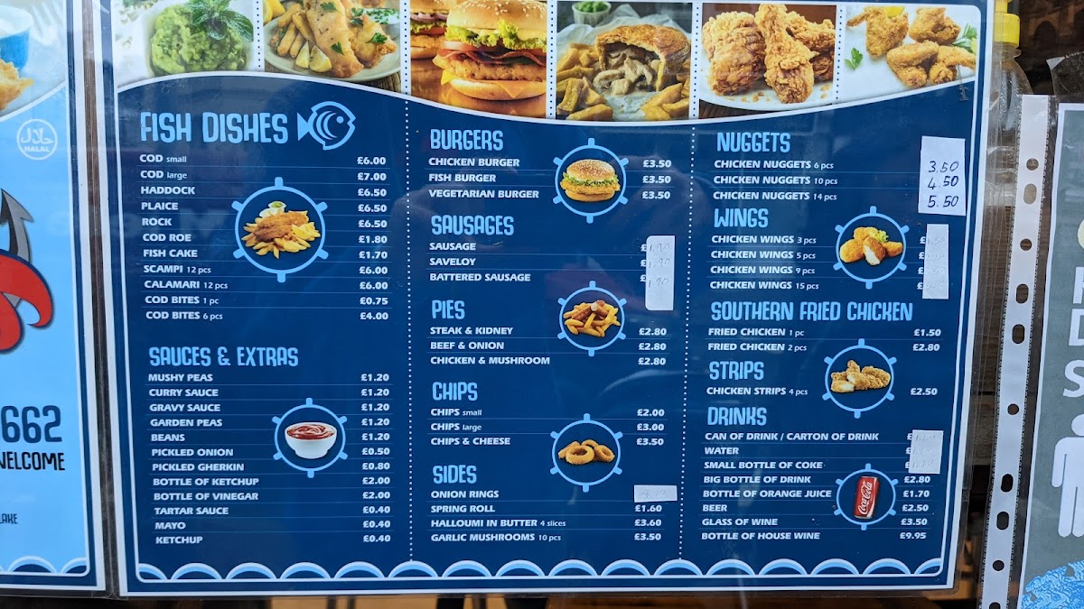 Overall, the menu at Sheen Fish Bar offers a classic and satisfying selection that covers all the traditional favourites you’d expect from a quality takeaway. The fish options like Cod Small, Cod Large, Haddock, Plaice, and Rock form the heart of the menu, complemented nicely by casual choices such as Chicken Burger, Fish Burger, and Vegetarian Burger. There’s plenty for those wanting something hearty, with items like Chicken Wings, Fried Chicken, and Chicken Strips, while sides including Onion Rings, Spring Roll, Halloumi in Batter, and Garlic Mushroom add variety. The range of extras like Mushy Peas, Curry Sauce, Gravy Sauce, Garden Peas, and Beans rounds out the experience, and traditional options such as Sausage, Saveloy, and Battered Sausage keep things authentic. Families are well catered for with kids’ meals like 4x Chicken Nuggets, 3x Cod Bites, and 3x Chicken Strips, alongside staples such as Chips Small, Chips Large, and Chips & Cheese. With simple drink options like Cans, Cartons, Water, Small Bottles, and Big Bottles, the menu feels complete, offering something comforting and familiar for every appetite.
